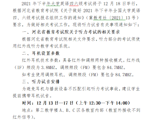 2021年下半年老员工英语四六级考试听力试音的通知