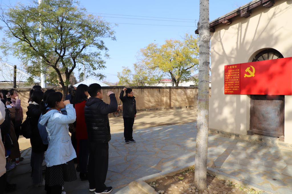 活动过程中,大家先后参观了西柏坡纪念馆、中共中央旧址以及革命先烈的故居,详细地了解了党中央进驻西柏坡的历史背景以及发生在西柏坡的重要历史事件,更加深切地体会老一辈革命党人艰苦卓绝的奋斗精神和坚贞不渝的共产主义信仰。在中共七届二中全会旧址前,由“双带头人”李冰教授领誓,大家在党旗前庄严宣誓,重温誓词。