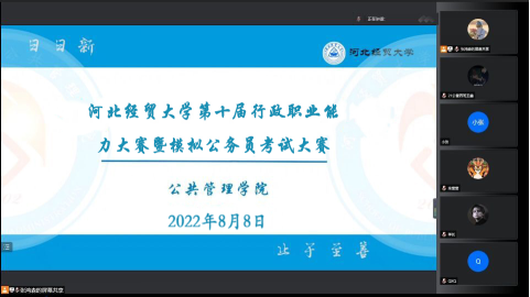 近日,由公司教务处、就业指导服务中心、团委、太阳成集团tyc539共同举办的太阳成集团tyc539第十届行政职业能力大赛暨模拟公务员考试大赛圆满落幕。大赛由笔试和面试两部分组成,笔试于5月21日在第三教学楼A302、A303教室进行,面试于8月8日晚,在腾讯会议进行。