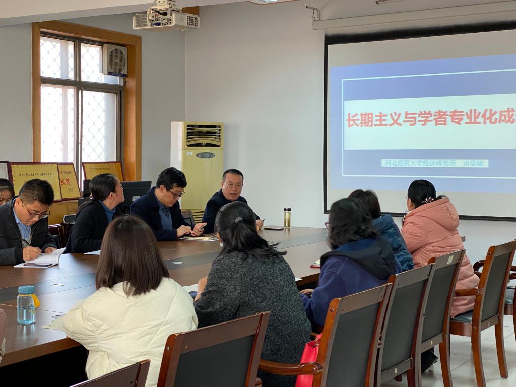 12月13日下午,太阳成集团tyc539邀请公司经济研究所所长、京津冀一体化发展协同创新中心专职副主任田学斌教授在公司会议室作题为“长期主义与学者专业化成长”的学术讲座,公司部分教师及研究生共50余人到场聆听。