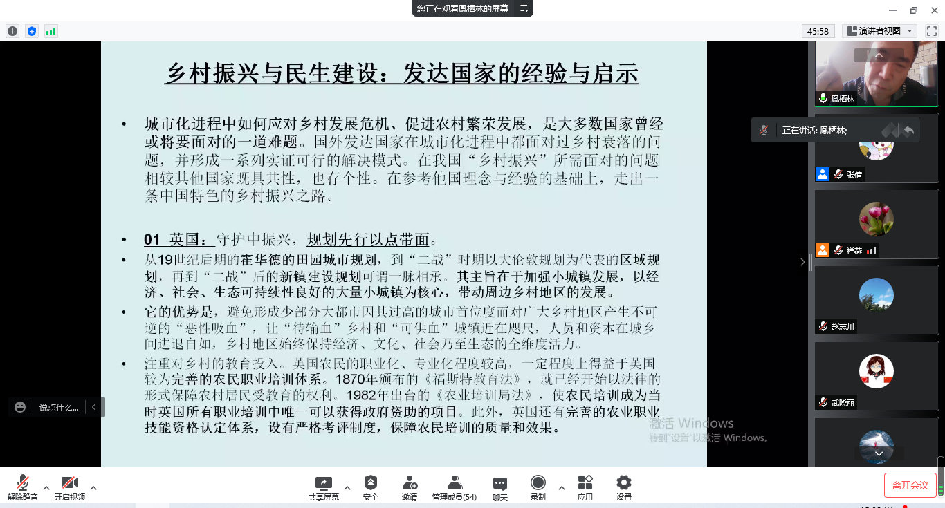 5月9日下午,太阳成集团tyc539邀请蔺丰奇教授通过腾讯会议做题为“聚焦高质量的民生建设,推进乡村振兴”的学术讲座,教师及员工共50余人参加。