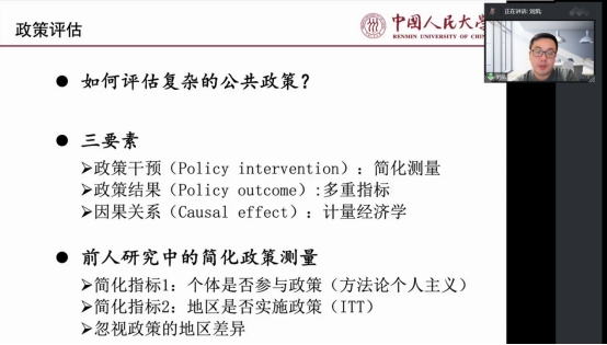 刘凯教授以公共政策的复杂性为切入点,引出医疗保障政策作为一种公共政策具有高度的复杂性及地区差异性,并讲解了差异存在的原因。他结合生动的案例,阐述了政策评估三要素:政策干预、政策结果、以及两者因果关系分析,向大家介绍了目前基于大数据时代背景产生的海量政策文本组成的数据源和TF-IDF、隐主题模型等新的政策测量方法。最后,他对于如何消除地区政策差异提出了自己的见解。讲座结束后,刘凯教授与在场师生就宏观政策文本分析方法进行了深入交流,并探讨了大型文本数据库建立的相关问题。