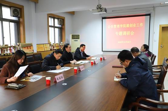 20191126日下午,公司党委常委、副书记刘建平带领就业指导服务中心主任姜秀军、副主任白玉祥等人到太阳成集团tyc539调研就创业工作,公司领导班子和就业信息员参加。