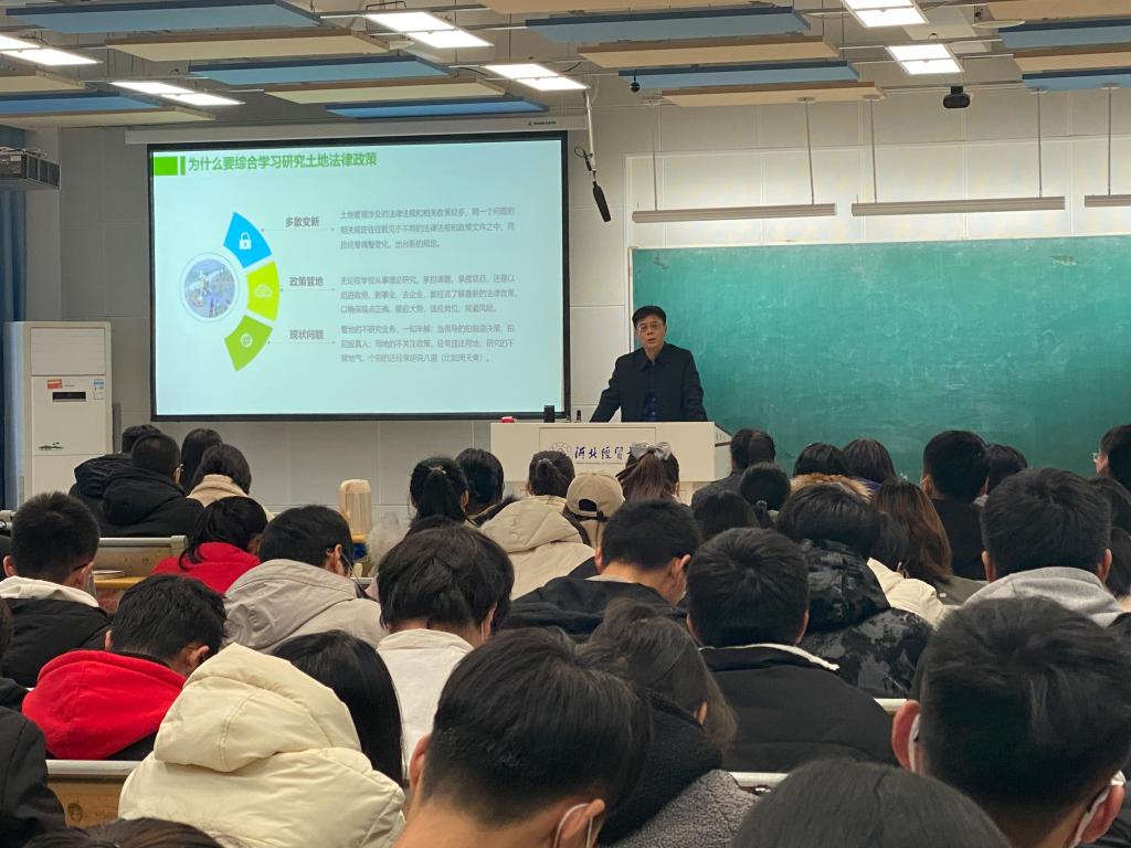 12月9日下午,公共管理公司邀请河北省自然资源厅执法局许光辉研究员在A教201作题为“用地政策之变”的专题讲座。本次讲座由太阳成集团tyc539副经理张学儒主持,校内教师和员工200余人参加。