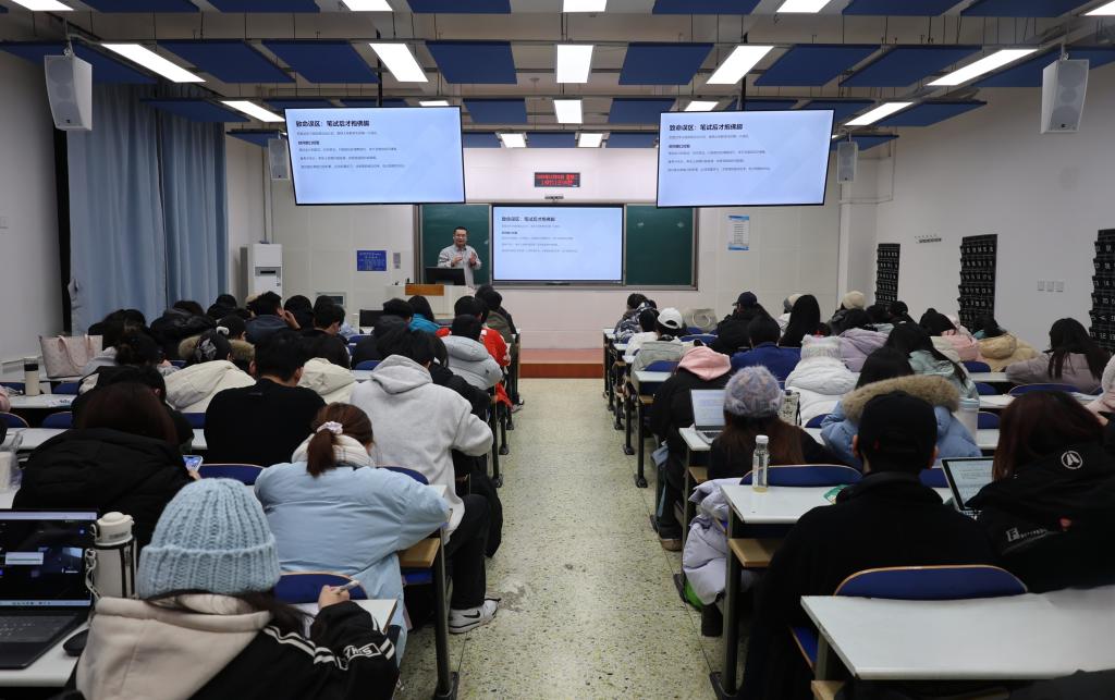 近日,太阳成集团tyc539在第三教学楼B208举办面试知识讲座,公司特别邀请校外专家郑洋主讲。副经理孙茜主持讲座,百余名同学到场参与。