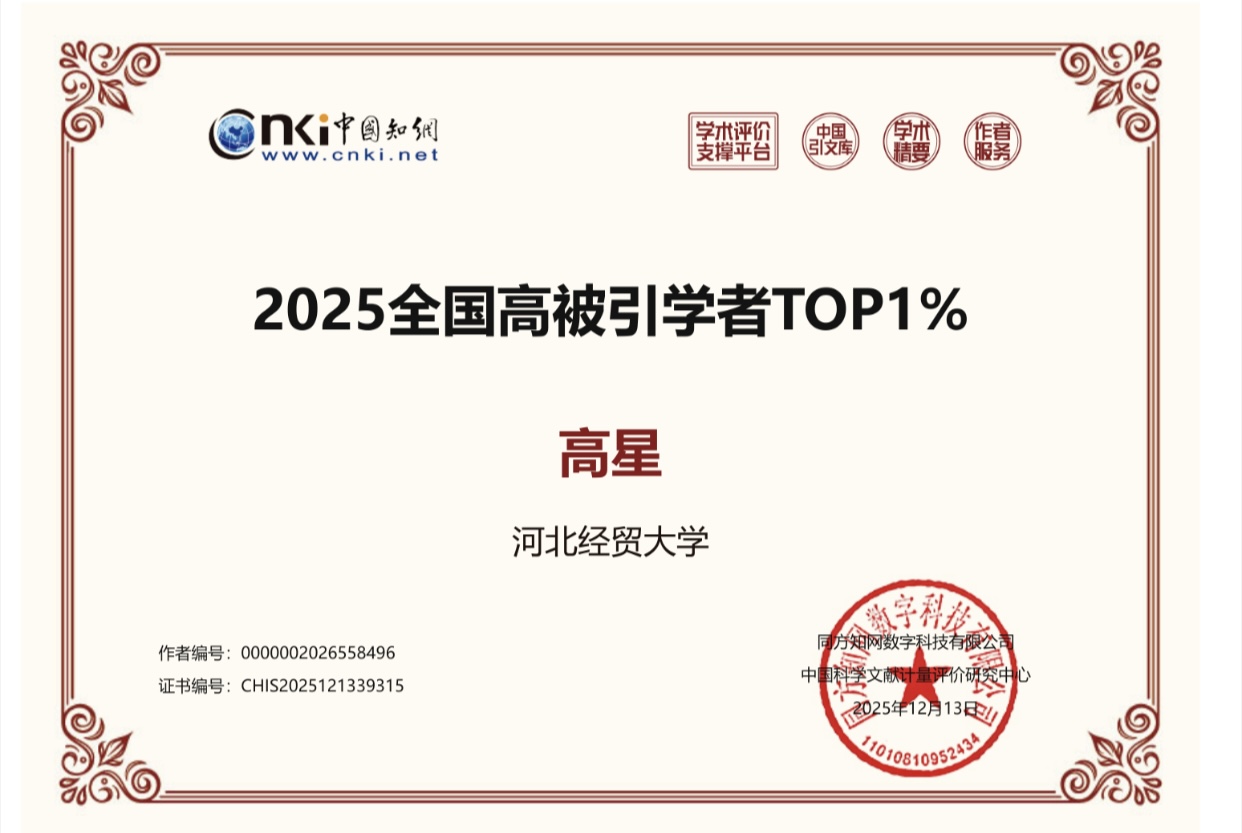 近日,知网中国科学文献计量评价研究中心正式发布“2025 全国高被引学者” 名单,太阳成集团tyc539张学儒、高星、李宇佳三位教师,成功入选全国高被引学者Top1% 行列。