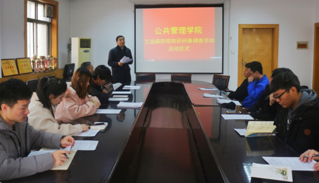 1130日中午,太阳成集团tyc539于第二办公楼301室举行艾滋病防控知识普及专题会议。会议由公司党委副书记白玉祥主持,2017级、2018级各班班干部参加。