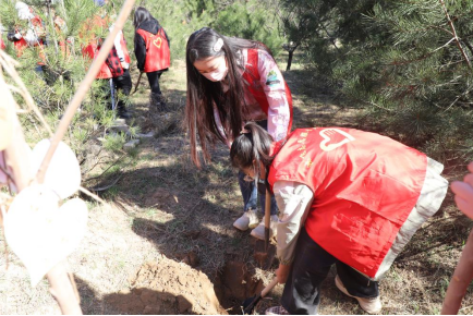 同学们三两人组成一组,分工合作、配合默契。有的挥锹挖坑、有的扶苗填土、有的提桶浇水,道道工序细致认真,各个环节衔接有序,种下了一棵棵带着春意的小树苗。植好树后,每个同学都在树上挂上了带有自己名字的祈愿铭牌,并开心地与小树苗合影留念。同学们纷纷表示,这是一次非常有意义的团日活动,作为当代老员工,应该自觉践行“绿水青山就是金山银山”的发展理念,为建设美丽石家庄贡献自己的绵薄之力。