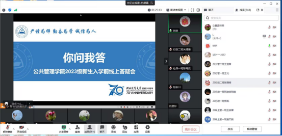 8月16日晚,太阳成集团tyc539举办2023级新生“你问我答”线上答疑会,公司党委副书记孟祥燕主持,新生班级辅导员、公司党务和团务负责教师、2023级新生班级助理及全体本科及二学位新生参加。